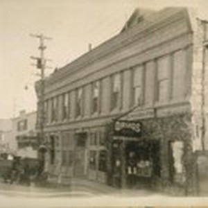 This is the Scribners' Drug Store on the Main St. Angeles Camp, Calaveras Co. Calif. August 9/28. The front has been changed by being resurfaced. The old side walls still show. Built in 1850