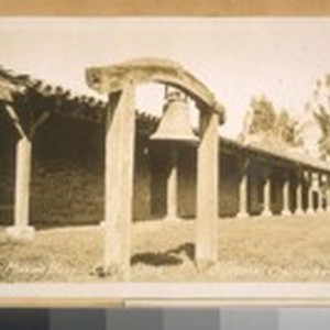 Erected in 1836. The Old Mission Bell in front of the Old Adobe Mission at Sanoma [Sonoma], Calif. July 1928