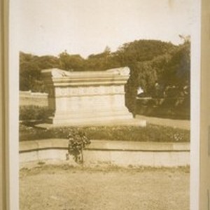 The tomb of Wm. Squire Clark. Born Oct. 3rd 1809 and died Nov. 16th 1889. The inscription on his tomb reads as follows, in the [year] 1847 at Clarks Point on Yerba Buena Cove, where Broadway & Battery St. meet the 1st piles for a wharf in San Francisco Bay were driven by Wm. S. Clark. See his home on the next page. May 4th 1929