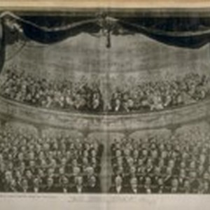 "At the Play" Respectfully inscribed to the Wealth, Enterprise and Beauty of California. Key block of the prominent San Franciscans at the play
