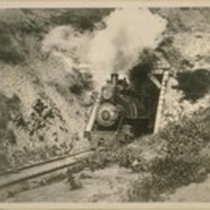 The Old Steam Train passing out of the tunnel near lands end. 1895