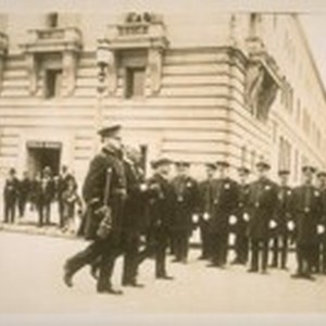 Nov. 3/28. [The annual inspection of the San Francisco] Police Dept. with Chief of Police W. J. O'Brien, Mayor Jas. Rolph, Jr. and Theo. J. Roche in the lead