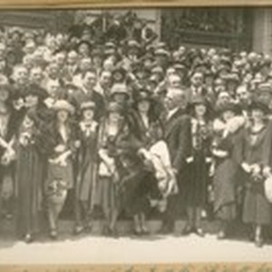 A bunch of movies in front of the City Hall here to celebrate the opening of the Lowe's-Warfield Theatre on Market at Taylor. It's on May 13/22, Saturday Eve. M.M. Sternin, straw hat near Walter Hiers