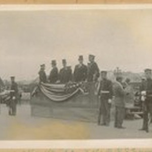 9 years after the fire at the P.P.I. [Panama-Pacific International] Exposition. [Officials on stand]
