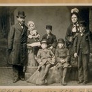 The Rolph family in 1875. L. to R.: Jas. Rolph, Sr., Miss Mildred Rolph - Wm. Rolph - Mrs. Jas. Rolph, Sr. - in front of her is Jas. Rolph, Jr. now our Mayor, and seated next to James is Ronald Rolph and then Geo. Rolph