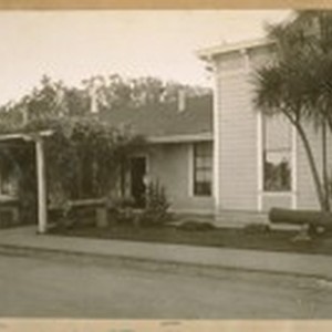 Presidio of San Francisco Comandante's Headquarters, A.D. 1776 - Officer's Quarters, under Spanish-Mexican & American rule and the oldest adobe house in San Francisco, showing the east end of building