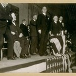 Wm. H. Crocker and John A. Britton at the Shortridge for Senator meeting with Sam Shortridge in the center, Nov. 1920
