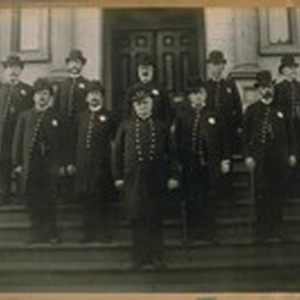 S.F. [San Francisco] Police Left to Right: Sergeants Flemming - Pittman - Harman - Harter - Sharp - Nash - Birdsall - Capt. W.J. Douglass - Fitzgerald - Flanders in 1889