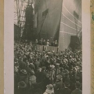 U.S.S. Calif. leaving the way's at Mare Island. Thursday Nov. 20--1919. Keel was layed [sic]. Oct. 26--1916. Mrs. Randolph Zane the daughter of Gov. Sterns was sponsor at the Christening