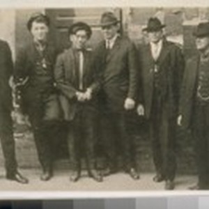 Left to Right--Lieut. Molloy--Lieut. Fenessey Wm.--Chinaman Hop Head--Wm. Quinn now Chief of Police--police officer Johnson who resigned from the Police Dept. and was later arrested smuggling narcotics--Dan J. O'Brien now retired Chief of Police--Photo taken about 1920