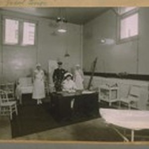 Emergency hospital at the auditorium, Democratic Convention, June 28th to July 6th Inc. 1920. Nurse at foot of bed is Mrs. Richard Jose, wife of the great tenor