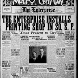 Local South San Francicsco newspaper documenting the town's growth as an industrial center between 1895 and 1925. Source material provided by the California Newspaper Microfilm Archive.