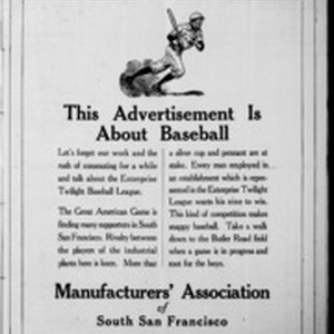 Copyright status unknown. This work may be protected by the U.S. Copyright Law (Title 17, U.S.C.). In addition, its reproduction may be restricted by terms of gift or purchase agreements, donor restrictions, privacy and publicity rights, licensing and trademarks. This work is accessible for purposes of education and research. Transmission or reproduction of works protected by copyright beyond that allowed by fair use requires the written permission of the copyright owners. Works not in the public domain cannot be commercially exploited without permission of the copyright owner. Responsibility for any use rests exclusively with the user. South San Francisco Public Library attempted to find rights owners without success but is eager to hear from them so that we may obtain permission, if needed. Upon request to ssfhistorical@gmail.com, digitized works can be removed from public view if there are rights issues that need to be resolved.