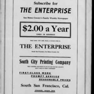 Local South San Francicsco newspaper documenting the town's growth as an industrial center between 1895 and 1925. Source material provided by the California Newspaper Microfilm Archive.