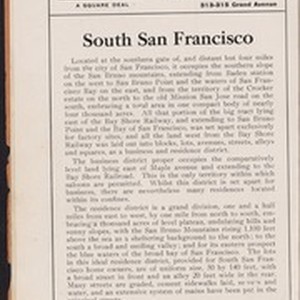 Copyright status unknown. This work may be protected by the U.S. Copyright Law (Title 17, U.S.C.). In addition, its reproduction may be restricted by terms of gift or purchase agreements, donor restrictions, privacy and publicity rights, licensing and trademarks. This work is accessible for purposes of education and research. Transmission or reproduction of works protected by copyright beyond that allowed by fair use requires the written permission of the copyright owners. Works not in the public domain cannot be commercially exploited without permission of the copyright owner. Responsibility for any use rests exclusively with the user. South San Francisco Public Library attempted to find rights owners without success but is eager to hear from them so that we may obtain permission, if needed. Upon request to ssfhistorical@gmail.com, digitized works can be removed from public view if there are rights issues that need to be resolved.