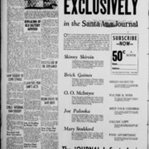 The Santa Ana Journal ran for 43 months from 1935 to 1938. Source material provided by the California Newspaper Microfilm Archive.
