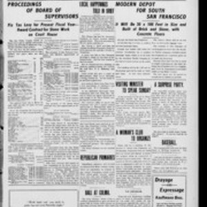 Local South San Francicsco newspaper documenting the town's growth as an industrial center between 1895 and 1925. Source material provided by the California Newspaper Microfilm Archive.