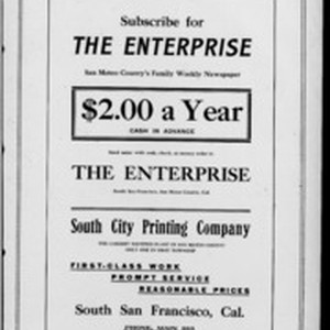 Local South San Francicsco newspaper documenting the town's growth as an industrial center between 1895 and 1925. Source material provided by the California Newspaper Microfilm Archive.