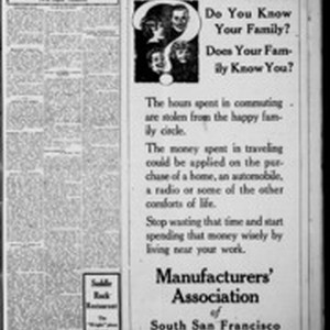 Local South San Francicsco newspaper documenting the town's growth as an industrial center between 1895 and 1925. Source material provided by the California Newspaper Microfilm Archive.