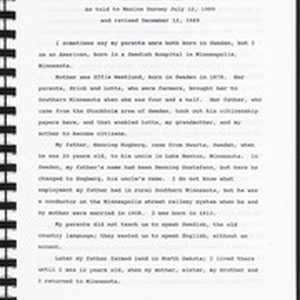 Swedish immigrants, Relocation to Petaluma (1935), Strike at Poultry Producers, Union membership, Poultry Producers jobs Topics covered include: Poultry Producers jobs; Relocation to Petaluma (1935); Strike at Poultry Producers; Swedish immigrants; Union membership.