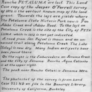 Copyrighted. Rights are owned by Petaluma Historical Library and Museum. Copyright Holder has given Institution permission to provide access to the digitized work online. Transmission or reproduction of materials protected by copyright beyond that allowed by fair use requires the written permission of the Copyright Holder. In addition, the reproduction of some materials may be restricted by terms of gift or purchase agreements, donor restrictions, privacy and publicity rights, licensing and trademarks. Works not in the public domain cannot be commercially exploited without permission of the copyright owner. Responsibility for any use rests exclusively with the user.