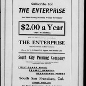 Local South San Francicsco newspaper documenting the town's growth as an industrial center between 1895 and 1925. Source material provided by the California Newspaper Microfilm Archive.