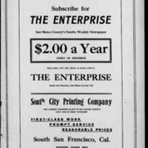 Local South San Francicsco newspaper documenting the town's growth as an industrial center between 1895 and 1925. Source material provided by the California Newspaper Microfilm Archive.
