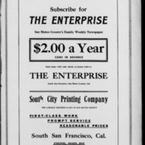 Local South San Francicsco newspaper documenting the town's growth as an industrial center between 1895 and 1925. Source material provided by the California Newspaper Microfilm Archive.