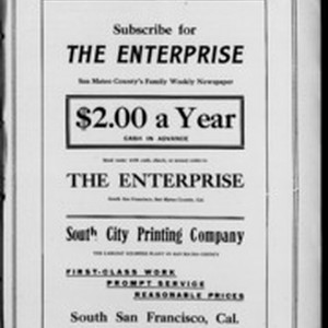 Local South San Francicsco newspaper documenting the town's growth as an industrial center between 1895 and 1925. Source material provided by the California Newspaper Microfilm Archive.