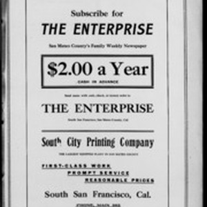 Local South San Francicsco newspaper documenting the town's growth as an industrial center between 1895 and 1925. Source material provided by the California Newspaper Microfilm Archive.