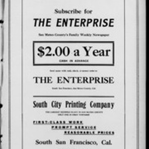 Local South San Francicsco newspaper documenting the town's growth as an industrial center between 1895 and 1925. Source material provided by the California Newspaper Microfilm Archive.