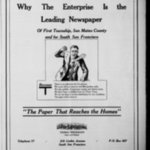Local South San Francicsco newspaper documenting the town's growth as an industrial center between 1895 and 1925. Source material provided by the California Newspaper Microfilm Archive.