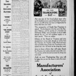 Local South San Francicsco newspaper documenting the town's growth as an industrial center between 1895 and 1925. Source material provided by the California Newspaper Microfilm Archive.
