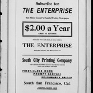 Local South San Francicsco newspaper documenting the town's growth as an industrial center between 1895 and 1925. Source material provided by the California Newspaper Microfilm Archive.