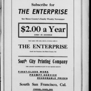 Local South San Francicsco newspaper documenting the town's growth as an industrial center between 1895 and 1925. Source material provided by the California Newspaper Microfilm Archive.
