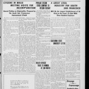 Local South San Francicsco newspaper documenting the town's growth as an industrial center between 1895 and 1925. Source material provided by the California Newspaper Microfilm Archive.