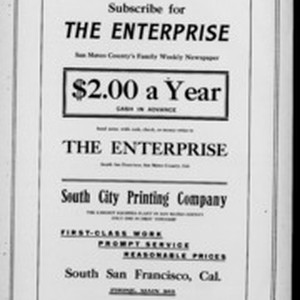 Local South San Francicsco newspaper documenting the town's growth as an industrial center between 1895 and 1925. Source material provided by the California Newspaper Microfilm Archive.