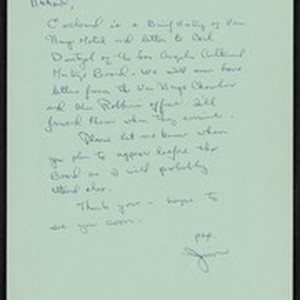 Copyright status unknown. This work may be protected by the U.S. Copyright Law (Title 17, U.S.C.). In addition, its reproduction may be restricted by terms of gift or purchase agreements, donor restrictions, privacy and publicity rights, licensing and trademarks. This work is accessible for purposes of education and research. Transmission or reproduction of works protected by copyright beyond that allowed by fair use requires the written permission of the copyright owners. Works not in the public domain cannot be commercially exploited without permission of the copyright owner. Responsibility for any use rests exclusively with the user. Los Angeles Valley College Historical Museum attempted to find rights owners without success but is eager to hear from them so that we may obtain permission, if needed. Upon request to REF@lavc.edu, digitized works can be removed from public view if there are rights issues that need to be resolved.