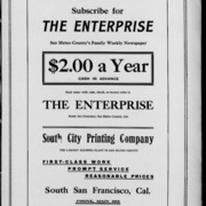 Local South San Francicsco newspaper documenting the town's growth as an industrial center between 1895 and 1925. Source material provided by the California Newspaper Microfilm Archive.