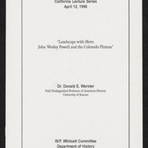 Whitsett California Lecture Series. Title: Landscape with Hero: John Wesley Powell and the Colorado Plateau. By Professor of American History at Kansas University, Dr. Donald E. Worster.