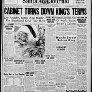 The Santa Ana Journal ran for 43 months from 1935 to 1938. Source material provided by the California Newspaper Microfilm Archive.