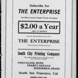 Local South San Francicsco newspaper documenting the town's growth as an industrial center between 1895 and 1925. Source material provided by the California Newspaper Microfilm Archive.
