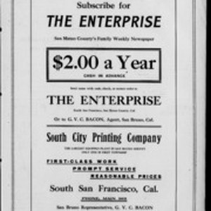 Local South San Francicsco newspaper documenting the town's growth as an industrial center between 1895 and 1925. Source material provided by the California Newspaper Microfilm Archive.