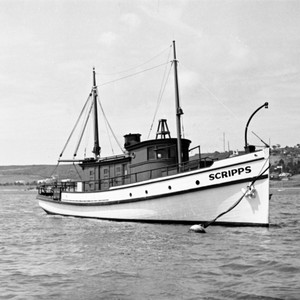 In September, 1925, Thaddeus, a former purse seiner, was purchased by Scripps Institution of Oceanography and renamed R/V Scripps. She was 64 feet long, 22 tons register, had a 15 foot beam and 6-8 foot draft, and was equipped with an 85 horsepower gasoline engine and berths for ten. Special Collections & Archives, UC San Diego, La Jolla, 92093-0175 (https://lib.ucsd.edu/sca) This digital image is a surrogate of an item from the Eugene Cecil LaFond Photographs, 1930-1940 This is a direct duplicate neg made in 1993 by Loren Pigniolo from the 35mm nitrate originals