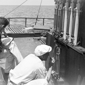 Seawater--Sampling Scientists Oceanographers Biologists Scripps (Ship) Revelle, Roger, 1909-1991 Fleming, Richard H. (Richard Howell), 1909-1989