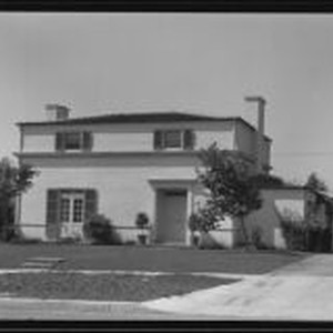 Access to this collection is generously supported by Arcadia funds. Although the negative sleeve attributes this work in this image to Jock Peters, other images in this negative group represent the Bachelors haberdashery by J. R. Davidson. Exterior view of a house possibly designed by Jacob (Jock) Detlof Peters or J. R. Davidson. Text from negative sleeve: Jock Peters, Bachelors, Rewelling