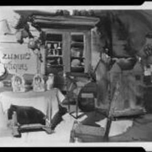 Access to this collection is generously supported by Arcadia funds. watercolor painting of merchandise display at Ziemer's Antiques shop Signed: Barse Miller