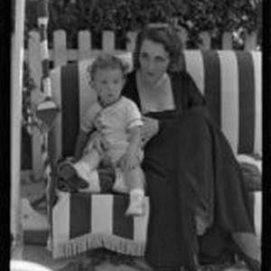 Access to this collection is generously supported by Arcadia funds. The 1930 Census lists Griffith's address as 5220 Lynwood Dr., in Los Feliz. Portrait photograph of Bertha Mann with her son Michael Griffith on a porch swing at their home. Bertha Mann was a stage actress who appeared in at least one silent film. She married silent movie comedian Raymond Griffith in 1928.