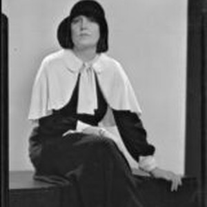 Access to this collection is generously supported by Arcadia funds. Mina Conselman was the wife of William Marien Conselman, an American screenwriter who also wrote newspaper comic strips. Portrait photograph of Mina (Wilhelmina) seated on a bench, wearing a cloche hat and a dark dress with a white capelet. Probably at Will Connell's studio. Text from negative sleeve: Conselman