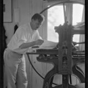 Access to this collection is generously supported by Arcadia funds. 1930 Arthur Millier lived at 320 Mesa Road in Santa Monica Canyon, according to the 1930 Census. Photograph of Arthur Millier operating a rolling press to make a print Arthur Millier (1893-1975) was an etcher, printmaker and art critic for the Los Angeles Times.